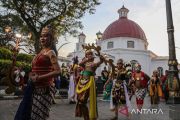 Peserta berjalan dengan mengenakan kostum tokoh wayang orang saat mengikuti lomba Parade Wayang dan Cosplay di kawasan Cagar Budaya Nasional Kota Lama, Semarang, Jawa Tengah, Minggu (14/9/2025). Kegiatan dalam rangka menyemarakkan Festival Kota Lama ke-14 yang diikuti peserta dari berbagai elemen masyarakat lintas generasi kota tersebut bertujuan untuk mengenalkan dan melestarikan kesenian budaya khas Jawa kepada generasi muda sekaligus memberi wadah serta ekspresi unjuk bakat bagi para seniman dan cosplayer di wilayah itu. ANTARA FOTO/Makna Zaezar/tom.