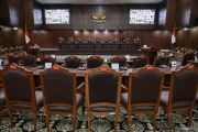 Layar menampilkan Ketua Mahkamah Konstitusi (MK) Suhartoyo saat memimpin sidang pengucapan putusan pengujian formil Undang-Undang Nomor 3 Tahun 2025 tentang Perubahan Atas Undang-Undang Nomor 34 Tahun 2004 tentang Tentara Nasional Indonesia di Gedung MK, Jakarta, Rabu (17/9/2025). Mahkamah Konstitusi menolak pengujian formil terhadap Undang-Undang Nomor 3 Tahun 2025 tentang Perubahan Atas Undang-Undang Nomor 34 Tahun 2004 tentang Tentara Nasional Indonesia (UU TNI) karena seluruh dalil permohonan tidak terbukti. ANTARA FOTO/Dhemas Reviyanto/foc.