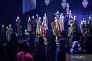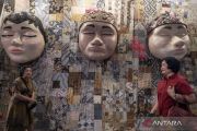 Pengunjung melihat seni instalasi dengan kain batik pada Pameran Batik Instalasi Masa Lalu, Sekarang dan Mendatang di Taman Balekambang, Solo, Jawa Tengah, Sabtu (20/9/2025). Pameran tersebut bertujuan untuk mengajak masyarakat melestarikan kain batik dengan menampilkan perjalanan kain batik sebagai warisan budaya yang telah berinovasi hingga menjadi sumber inspirasi untuk bertransformasi. ANTARA FOTO/Mohammad Ayudha/YU