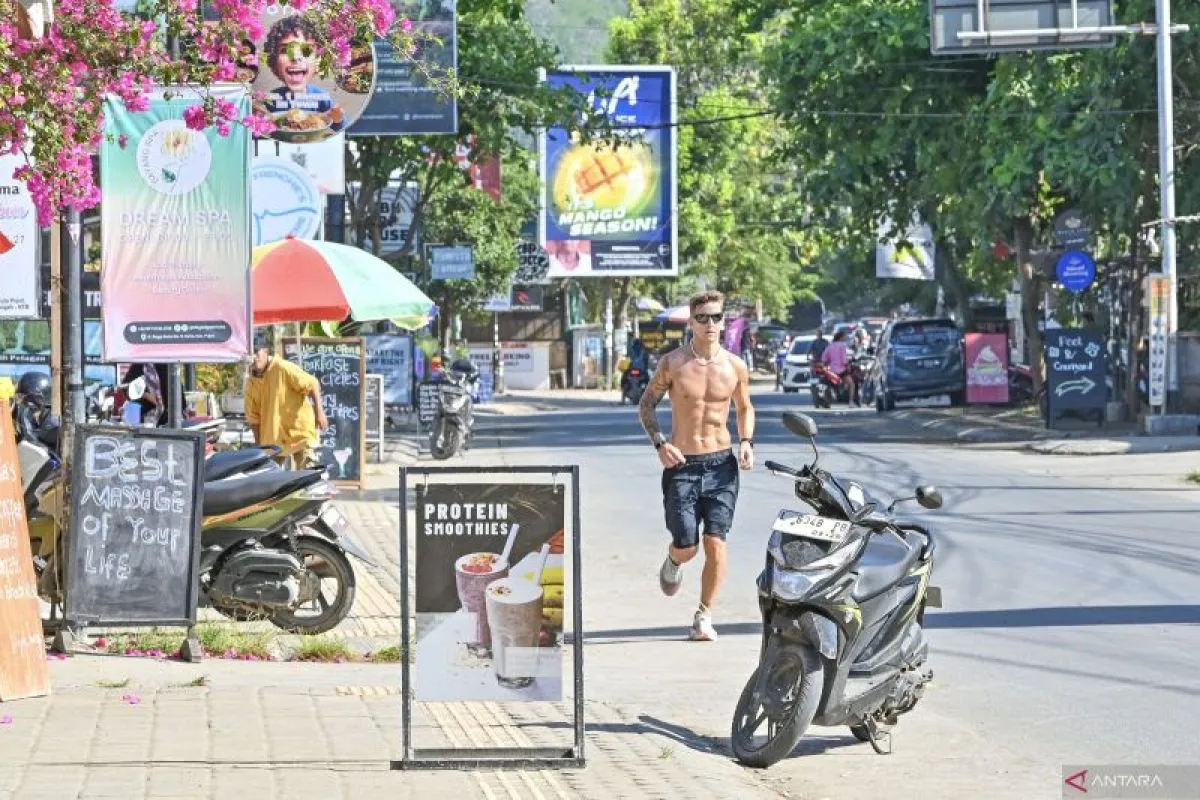Pembalap Tim Monster Energy Yamaha Fabio Quartararo berlari di jalanan Desa Kuta, Mandalika, Lombok Tengah, NTB, Kamis (2/10/2025). Ajang balapan MotoGP seri ke 18 bertajuk Pertamina Grand Prix of Indonesia akan berlangsung pada 3-5 Oktober 2025. ANTARA FOTO/Ahmad Subaidi/foc.
