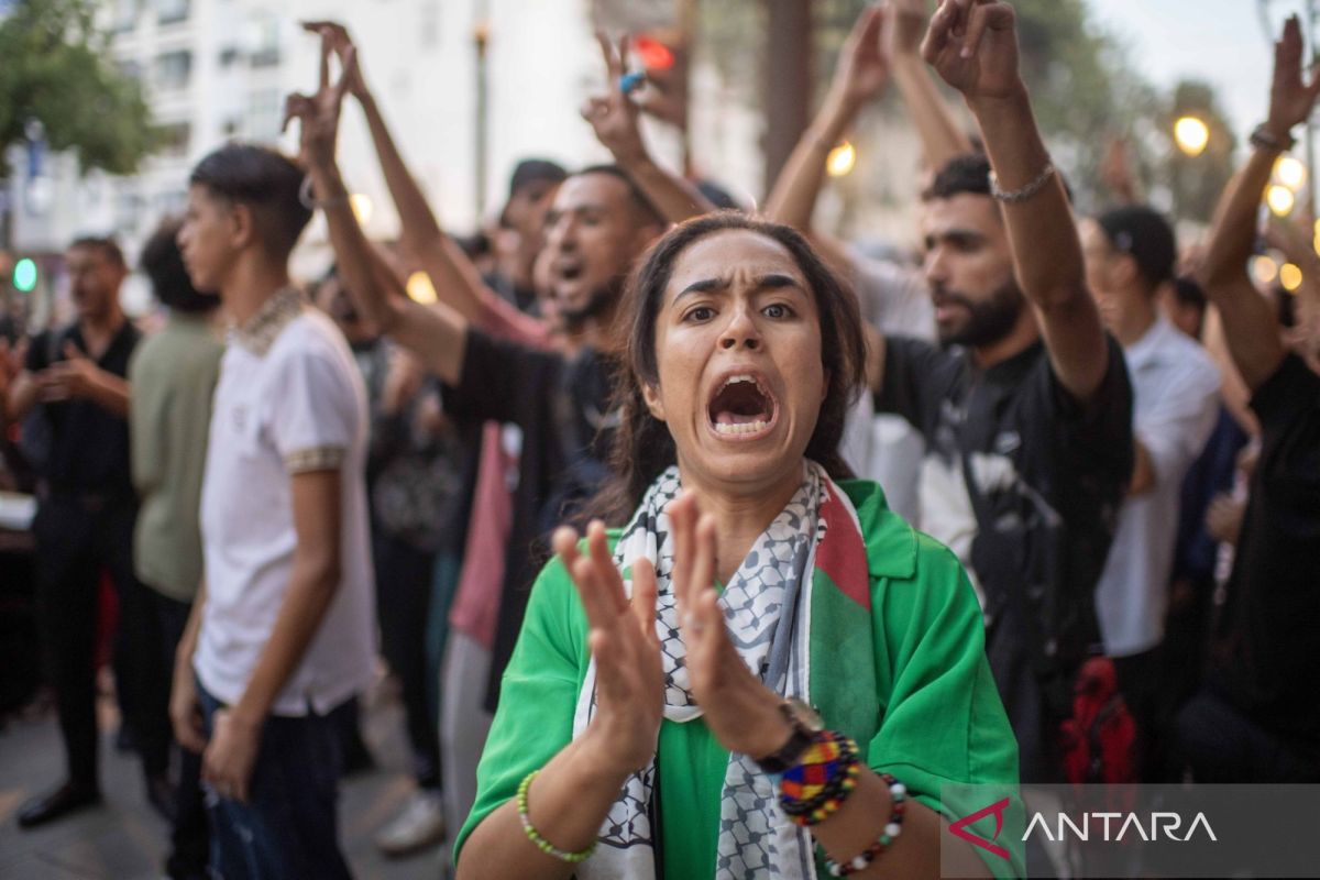 Sejumlah pemuda melakukan aksi unjuk rasa menuntut reformasi di bidang pendidikan dan layanan kesehatan serta pemberantasan korupsi di Rabat, Maroko, Kamis (2/10/2025). Aksi yang dipicu oleh Gerakan GenZ 212 yang menuntut keadilan sosial dan pemberantasan korupsi, terus berlanjut di banyak kota di seluruh negeri. ANTARA FOTO/Reuter/Anadolu/Abu Adem Muhammed/nz