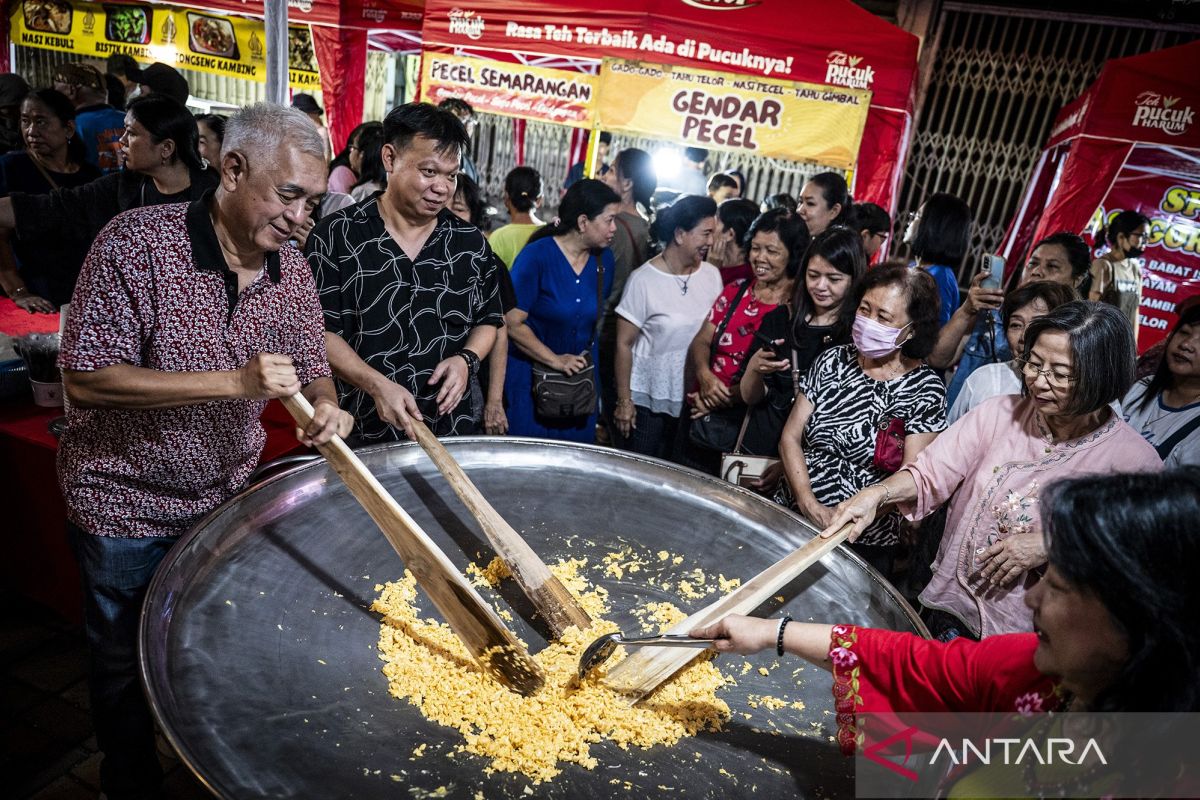 Warga memasak telur di area Pasar Semawis, Jalan Gang Warung, Semarang, Jawa Tengah, Sabtu (4/10/2025). Pemkot Semarang kembali membuka Pasar Semawis di kawasan Pecinan tersebut yang sempat terhenti saat pandemi COVID-19 dalam rangka menghidupkan kembali denyut ekonomi warga dan mengembalikan keberadaan ikon wisata kuliner khas Kota Semarang. ANTARA FOTO/Aprillio Akbar/agr