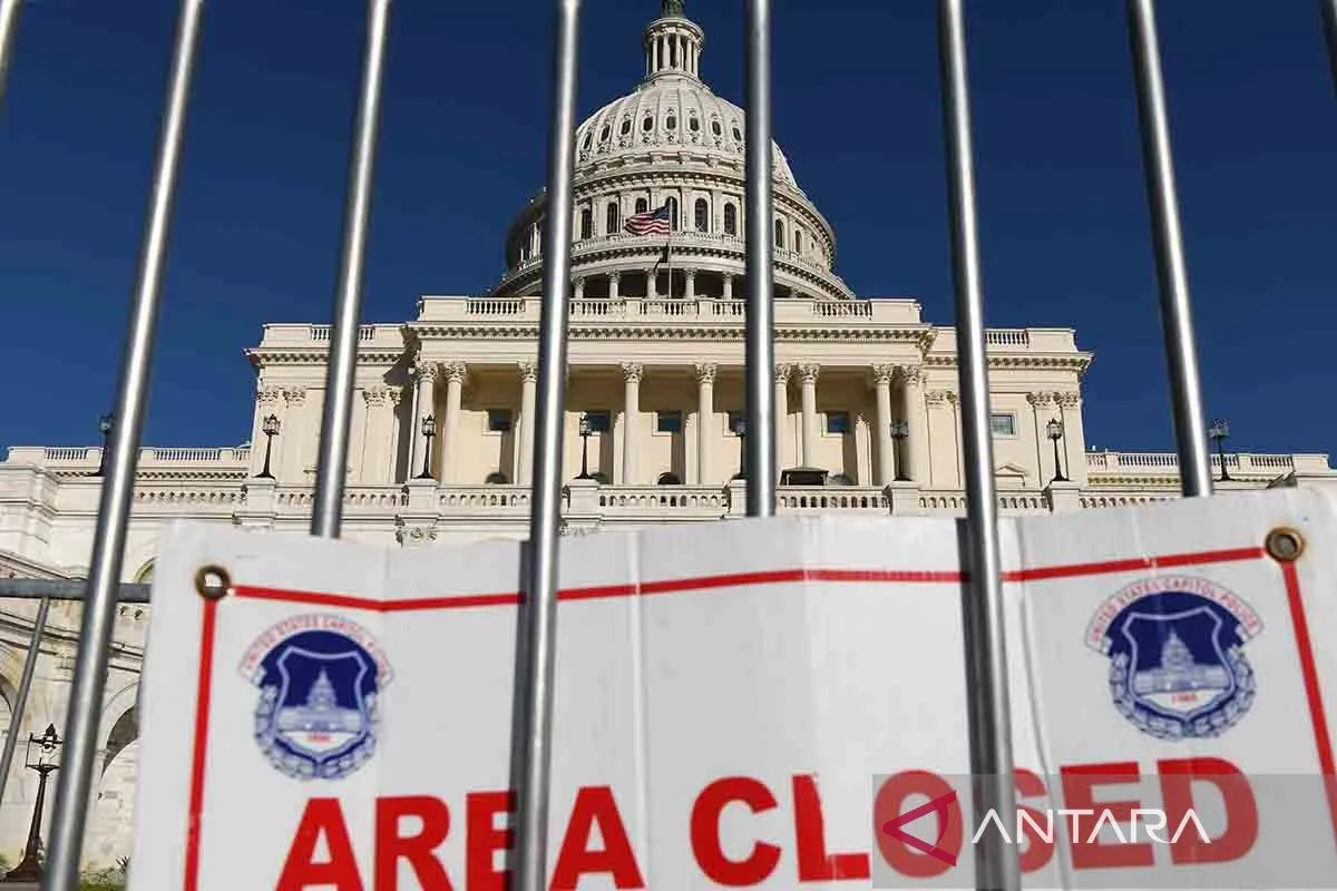 Papan pengumuman penutupan area Gedung Capitol, Washington DC, Amerika Serikat, Senin (6/10/2025). Pemerintah AS memasuki hari kelima shutdown atau penghentian operasional, setelah Senat gagal menyetujui RUU belanja tahunan pada Selasa (30/9) lalu. ANTARA FOTO/Xinhua/Li Rui/rwa.