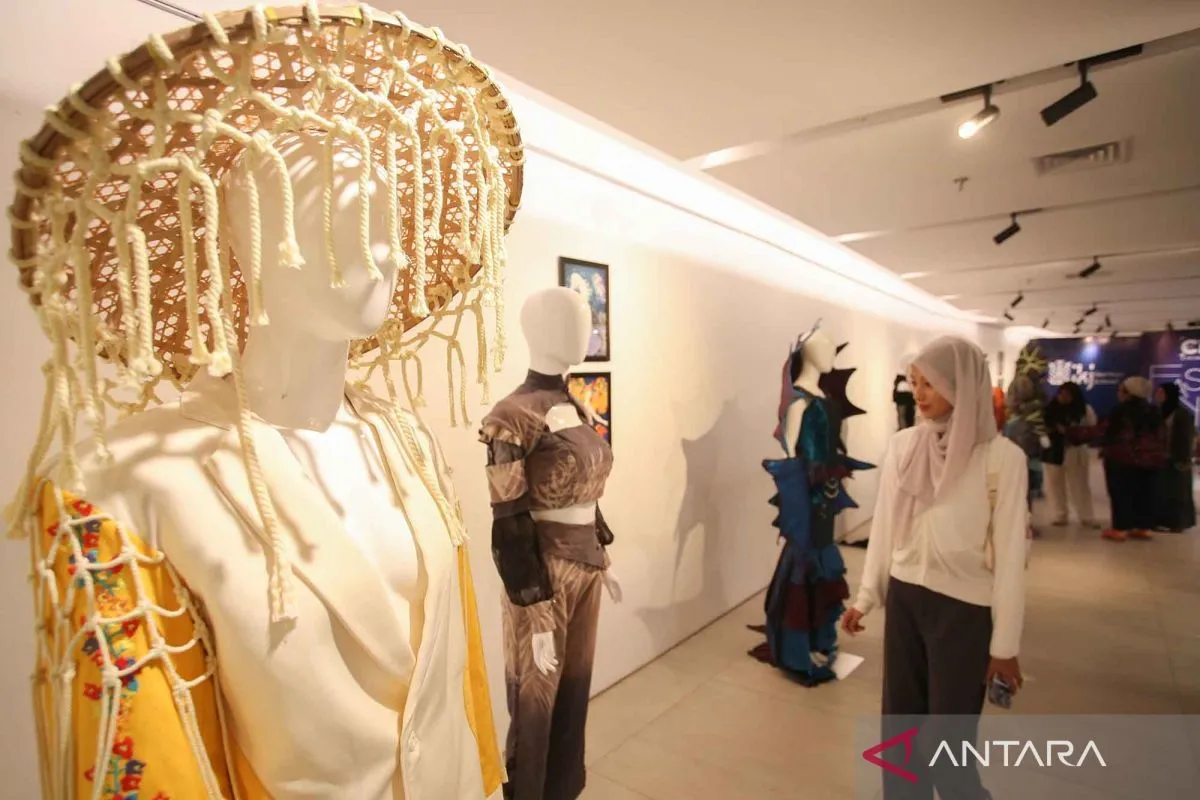 Pengunjung mengamati koleksi busana yang dipamerkan dalam Cikini Fashion Festival di Taman Ismail Marzuki, Jakarta, Jumat (24/10/2025). Festival tahunan yang digelar Program Studi Mode dan Busana, Fakultas Seni Rupa dan Desain, Institut Kesenian Jakarta, yang menampilkan karya mahasiswa dalam bidang fashion. ANTARA FOTO/Muhammad Iqbal/YU