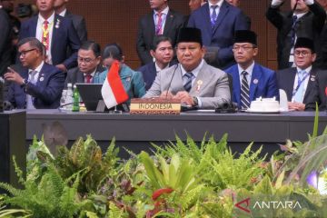 Presiden Prabowo Subianto (ketiga kanan) didampingi Menteri Luar Negeri Sugiono (kedua kanan) mengikuti sesi pleno KTT ke-47 ASEAN di Kuala Lumpur, Malaysia, Minggu (26/10/2025). Dalam rangkaian KTT Ke-47 ASEAN, para pemimpin ASEAN mengukuhkan Timor-Leste sebagai anggota penuh ke-11 ASEAN. ANTARA FOTO/Cahya Sari/app/nz