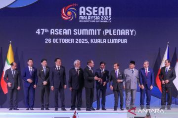 Presiden Prabowo Subianto (ketiga kanan) bersiap mengikuti sesi foto dengan (dari kiri) Sekretaris Tetap Kementerian Luar Negeri Myanmar Hau Khan Sum, Wakil Menteri Luar Negeri Vietnam Dang Hoang Giang, Perdana Menteri Singapura Lawrence Wong, Perdana Menteri Thailand Anutin Charnvirakul, Perdana Menteri Timor Leste Xanana Gusmao, Perdana Menteri Malaysia Anwar Ibrahim, Presiden Filipina Ferdinand Marcos Jr., Sultan Brunei Hassanal Bolkiah, Perdana Menteri Kamboja Hun Manet, dan Perdana Menteri Laos Sonexay Siphandone sebelum sesi pleno KTT ke-47 ASEAN di Kuala Lumpur, Malaysia, Minggu (26/10/2025). Dalam rangkaian KTT Ke-47 ASEAN, para pemimpin ASEAN mengukuhkan Timor-Leste sebagai anggota penuh ke-11 ASEAN. ANTARA FOTO/Cahya Sari/app/nz