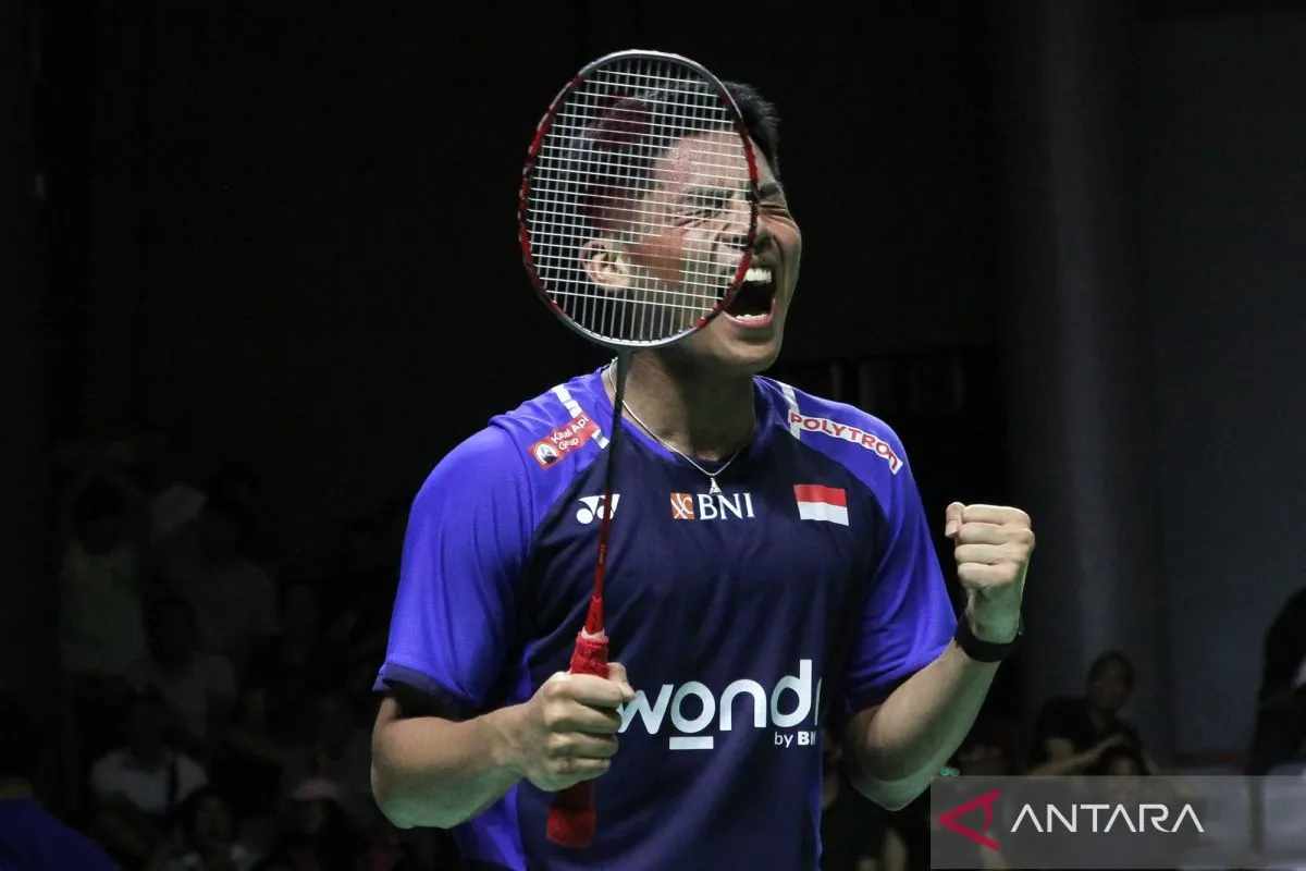 Ekspresi pebulu tangkis tunggal putra Indonesia Zaki Ubaidillah usai mengalahkan pebulu tangkis China Dong Tian Yao pada final Indonesia Master 2025 di GOR PBSI Sumut, Kabupaten Deli Serdang, Sumatera Utara, Minggu (26/10/2025). Zaki Ubaidillah menjadi juara tunggal putra Indonesia Master 2025 usai mengalahkan pebulu tangkis China Dong Tian Yao dalam dua gim (21-11, 21-8). ANTARA FOTO/Yudi Manar/nz