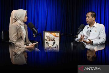 Menteri Transmigrasi Muhammad Iftitah Sulaiman Suryanagara menjawab pertanyaan dalam program siniar (podcast) di Antara Heritage Center (AHC), Jakarta, Selasa (27/10/2025). Siniar tersebut membahas program Transmigran Patriot yang merupakan inisiatif Kementerian Transmigrasi untuk mengembangkan kawasan transmigrasi menjadi pusat pertumbuhan ekonomi baru dengan melibatkan generasi muda. ANTARA FOTO/Bayu Pratama S/YU