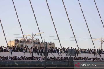 Sejumlah orang Yahudi Ultra-Ortodoks berdoa dalam aksi protes di Yerusalem, Kamis(30/10/2025). Ratusan ribu Yahudi Ultra-Ortodoks memenuhi jalan-jalan Yerusalem untuk memprotes rencana pemerintah memperluas wajib militer di komunitas mereka dan penangkapan orang yang menghindari wajib militer baru-baru ini oleh polisi militer. ANTARA FOTO/Xinhua/Gil Cohen Magen/nym.