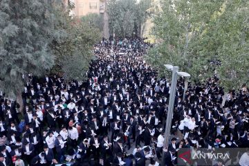 Sejumlah orang Yahudi Ultra-Ortodoks berpartisipasi dalam aksi protes di Yerusalem, Kamis(30/10/2025). Ratusan ribu Yahudi Ultra-Ortodoks memenuhi jalan-jalan Yerusalem untuk memprotes rencana pemerintah memperluas wajib militer di komunitas mereka dan penangkapan orang yang menghindari wajib militer baru-baru ini oleh polisi militer. ANTARA FOTO/Xinhua/Gil Cohen Magen/nym.