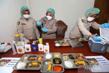 Tim food security Seksi Kedokteran dan Kesehatan (Sidokkes) Polresta Banda Aceh menguji Makan Bergizi Gratis (MBG) sebelum didistribusikan kepada penerima manfaat di Satuan Pelayanan Pemenuhan Gizi (SPPG) Polri Yayasan Kemala Bhayangkari Cabang Kota Banda Aceh, Aceh, Jumat (31/10/2025). Tim food security Sidokkes Polresta Banda Aceh melakukan tes cepat untuk memeriksa kandungan zat kimia sianida, formalin, nitrit, boraks, arsen dan pencegahan keracunan pada menu MBG sebelum dikonsumsi para pelajar di Kota Banda Aceh. ANTARA FOTO/Irwansyah Putra/nym.