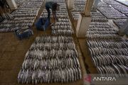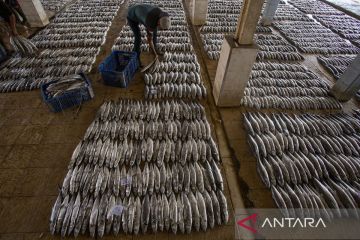 Nelayan mengumpulkan ikan hasil tangkapan sebelum dilelang di Tempat Pelelangan Ikan Majakerta, Balongan, Indramayu, Jawa Barat, Sabtu (1/11/2025). Kementerian Kelautan dan Perikanan (KKP) memastikan volume penangkapan ikan nasional sepanjang tahun 2025 tidak akan melebihi 7 juta ton, kebijakan pembatasan ini dilakukan untuk menjaga keberlanjutan sumber daya laut sekaligus menyeimbangkan antara kebutuhan ekonomi dan ekologi. ANTARA FOTO/Dedhez Anggara/tom.