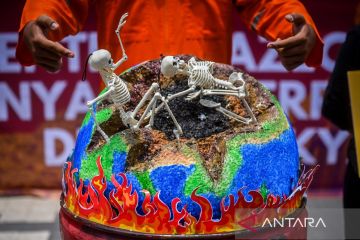 Aktivis yang tergabung dalam Jejaring Organisasi Masyarakat Sipil Indonesia melakukan aksi di depan Kantor Kedutaan Besar Jepang, Jakarta, Senin (27/10/2025). Mereka mendesak pemerintah Jepang dan Indonesia agar berkomitmen pada transisi energi yang cepat, adil, dan merata. ANTARA FOTO/Rivan Awal Lingga/tom.