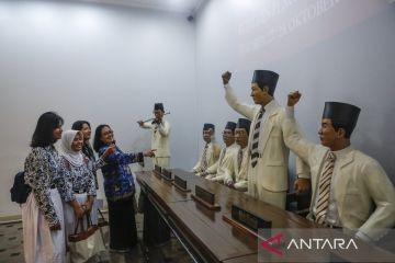 Sejumlah siswa mengamati diorama kongres pemuda usai mengikuti upacara peringatan Hari Sumpah Pemuda di Museum Sumpah Pemuda, Jakarta, Selasa (28/10/2025). Museum dan Cagar Budaya Kementerian Kebudayaan menggelar upacara untuk memperingati Hari Sumpah Pemuda ke-97 sebagai bentuk penghormatan atas semangat para pemuda. ANTARA FOTO/Asprilla Dwi Adha/tom.