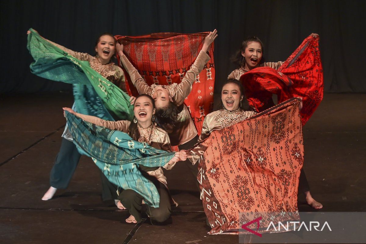 Penari Sanggar Tiras Dancer SMAN Titian Teras Muaro Jambi menampilkan tari sarung pada Festival Tari di Taman Budaya Jambi, Jambi, Senin (3/11/2025). Festival bertema permainan rakyat yang digelar 3-4 November 2025 itu diikuti 20 lebih sanggar dari kategori pelajar dan umum se-Provinsi Jambi dan bertujuan untuk melestarikan kebudayaan. ANTARA FOTO/Wahdi Septiawan/tom.
