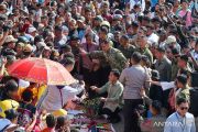 Wakil Presiden Gibran Rakabuming Raka (kanan bawah) berdialog dengan para pedagang di Pasar Wosi, Manokwari, Papua Barat, Rabu (5/11/2025). Dalam kunjungan kerjanya Gibran meninjau harga pangan sekaligus mendukung ekonomi rakyat dengan berbelanja di pasar tersebut. ANTARA FOTO/Chairil Indra/YU