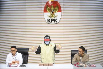 Direktur Penyidikan (Dirdik) KPK Asep Guntur Rahayu (kiri) didampingi Juru Bicara KPK Budi Prasetyo (kanan) menunjukan barang bukti hasil Operasi Tangkap Tangan (OTT) yang melibatkan Bupati Ponorogo Sugiri Sancoko di gedung Merah Putih KPK, Jakarta, Minggu (9/11/2025). Dari hasil operasi tangkap tangan, KPK menetapkan dan menahan Bupati Ponorogo Sugiri Sancoko, Sekda Agus Pramono, Direktur RSUD Harjono Kabupaten Ponorogo Yunus Mahatma, dan pihak swasta Sucipto sebagai tersangka terkait kasus dugaan suap pengurusan jabatan, dugaan suap proyek pekerjaan di RSUD Ponorogo dan gratifikasi di lingkungan Pemerintah Kabupaten Ponorogo. ANTARA FOTO/Muhammad Adimaja/YU
