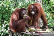 Orang utan subspecies Pongo pygmaeus wurmbii memakan buah di tempat prapelepasliaran di Pulau Bangamat, Palangka Raya, Kalimantan Tengah, Jumat (7/11/2025). Yayasan Borneo Orang Utan Survival Foundation (BOSF) bersama Balai Konservasi Sumber Daya Alam (BKSDA) Kalimantan Tengah melepasliarkan tiga individu Orang Utan subspecies Pongo Pygmaeus Wurmbii ke tempat prapelepasliaran di Pulau Bangamat untuk mengembangkan insting hidup liar di habitatnya. ANTARA FOTO/Auliya Rahman/nym.