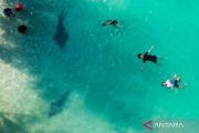 Wisatawan bermain dengan hiu pari di Pulau Payung, Kepulauan Seribu, Jakarta, Selasa (4/11/2025). Berdasarkan data Kementerian Pariwisata, target investasi sektor pariwisata pada periode 2025-2029 menitikberatkan pada 10 destinasi pariwisata prioritas seperti di Provinsi DKI Jakarta yang ditargetkan dapat menarik investasi senilai Rp14,3 triliun pada 2025 dan mencapai Rp22 triliun pada 2029. ANTARA FOTO/Sulthony Hasanuddin/nym.