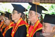 Sejumlah lansia peserta angkatan pertama Sekolah Lansia Werdha Winangun Urip mengikuti wisuda di Badung, Bali, Senin (10/11/2025). Wisuda tersebut dilakukan setelah para lansia selesai mengikuti berbagai kegiatan pendidikan dan pelatihan di sekolah tersebut seperti pada aspek kesehatan keluarga, keterampilan diri hingga pengembangan sosial. ANTARA FOTO/Fikri Yusuf/rwa.