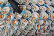 Seorang panitia menyiapkan makanan bakso dari olahan ikan sebelum dibagikan kepada pelajar saat Gerakan Gemar Makan Ikan Central Java Fish Market #4 di Kantor Gubenur Jateng, Semarang, Jawa Tengah, Selasa (11/11/2025). Kegiatan yang diinisiasi Pemprov Jateng berkolaborasi dengan Bank Indonesia dengan membagikan gratis sebanyak 1.000 porsi bakso dari bahan olahan ikan kepada pelajar tersebut untuk mengampanyekan kepada masyarakat tentang pentingnya konsumsi ikan guna mencegah stunting sekaligus membentuk generasi yang sehat, kuat, dan cerdas. ANTARA FOTO/Makna Zaezar/YU
