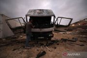 Warga Palestina memeriksa kendaraan yang rusak akibat kebakaran yang dilakukan oleh pemukim Israel di Desa Beit Lid, Tepi Barat, Selasa (11/11/2025) waktu setempat. Kantor berita Palestina, WAFA melaporkan pemukim Israel menyerang fasilitas industri dan pertanian di Beit Lid yang menyebabkan kebakaran besar dan melukai beberapa warga Palestina. ANTARA FOTO/Xinhua/Nidal Eshtayeh/sgd