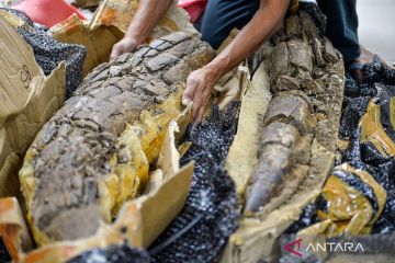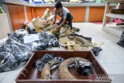 Geolog merangkai fosil gajah purba (Stegodon trigonocephalus) saat proses preparasi di Museum Geologi, Bandung, Jawa Barat, Rabu (12/11/2025). Tim geolog Museum Geologi mulai melakukan preparasi satu fosil gading gajah purba yang ditemukan di Nganjuk, Jawa Timur pada Oktober 2024 yang diperkirakan berusia 800 ribu tahun dengan target preparasi, konservasi, hingga pembuatan replika gading tersebut yang diperkirakan selesai pada Desember 2025. ANTARA FOTO/Raisan Al Farisi/sgd
