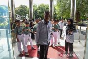 Wakil Ketua KPK Ibnu Basuki Widodo (tengah) bersama pelajar SDN Setu 02 Cipayung berjalan untuk melakukan siniar tentang pendidikan antikorupsi di Gedung Merah Putih KPK, Jakarta, Senin (17/11/2025). Wakil Ketua KPK mengundang keenam pelajar SD tersebut untuk melakukan siniar bersama setelah sebelumnya para pelajar tersebut viral atas aksi kejujuran mereka mengembalikan gawai yang ditemukannya ke polisi di kawasan Cipayung, Jakarta Timur. ANTARA FOTO/Indrianto Eko Suwarso/rwa.