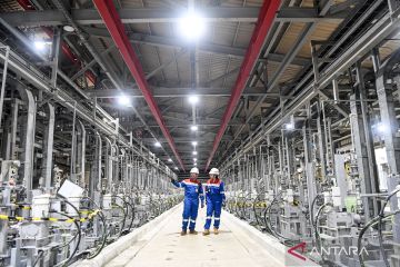 Pekerja melakukan patroli pada unit utilitas Brackish Water Reverse Osmosis (BWRO) di Kilang Pertamina Balikpapan, Kalimantan Timur, Rabu (3/12/2025). Unit BWRO mampu mengolah air payau menjadi air bersih untuk kebutuhan operasional kilang dengan total kapasitas sekitar 3.500 meter kubik per jam, selain itu juga memiliki fasilitas pengolahan air laut Sea Water Reverse Osmosis (SWRO) dengan kapasitas sekitar 4.000 meter kubik per jam untuk mendukung proses produksi kilang. ANTARA FOTO/M Risyal Hidayat/bar