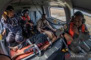 Satgas TNI AL melakukan evakuasi medis lewat udara bagi korban bencana alam menggunakan helikopter di Desa Marlempang, Aceh Tamiang, Aceh, Kamis (11/12/2025). TNI AL menggunakan helikopter untuk melakukan evakuasi medis lewat udara bagi warga yang terdampak bencana alam karena sulit dijangkau melalui jalur darat akibat akses yang terputus di wilayah Aceh Tamiang. ANTARA FOTO/Bayu Pratama S/YU