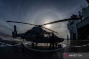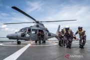 Prajurit Skuadron 100 Wing Udara 2 Satgas TNI AL bersiap menggunakan Helikopter HS 1302 saat evakuasi medis lewat udara bagi korban bencana alam di Desa Marlempang, Aceh Tamiang, Aceh, Kamis (11/12/2025). TNI AL menggunakan helikopter untuk melakukan evakuasi medis lewat udara bagi warga yang terdampak bencana alam karena sulit dijangkau melalui jalur darat akibat akses yang terputus di wilayah Aceh Tamiang. ANTARA FOTO/Bayu Pratama S/YU