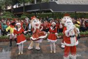 Peserta mengenakan kostum bertema Natal saat mengikuti Christmas Carol Colossal di kawasan Bundaran HI, Jakarta, Kamis, (11/12/2025). Pemprov DKI Jakarta menyiapkan sejumlah acara untuk menyemarakkan Natal 2025 seperti Christmas Carol Colossal dan Jakarta Light Festival yang digelar mulai 11 Desember 2025 hingga 9 Januari 2026. ANTARA FOTO/Dhemas Reviyanto/bar