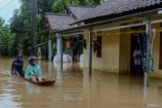 Warga berjalan menerobos banjir di Kampung Kajaroan, Cinangka, Kabupaten Serang, Banten, Kamis (18/12/2025). BPBD Kabupaten Serang mencatat hingga Kamis (18/12) sebanyak 2.125 jiwa di tiga kecamatan di Kabupaten Serang terdampak bencana banjir akibat curah hujan tinggi yang terjadi sejak empat hari terakhir dengan ketinggian banjir berkisar 50-80 cm. ANTARA FOTO/Muhammad Bagus Khoirunas/foc.