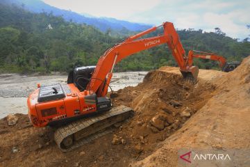 Pekerja mengoperasikan alat berat untuk membuat jalur alternatif jalan lintas provinsi dari Gayo Lues menuju Aceh Tenggara di Desa Singgah Mule, Kecamatan Putri Betung, Gayo Lues, Aceh, Minggu (21/12/2025). Kementerian Pekerjaan Umum (PU) bersama PT Hutama Karya (persero) terus berupaya membuat jalur alternatif untuk mempercepat dan melancarkan arus lalu lintas pascabencana hidrometeorologi yang melanda sejumlah kabupaten/kota di Aceh. ANTARA FOTO/Syifa Yulinnas/nz