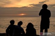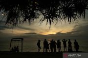 Pengunjung menikmati suasana matahari terbenam (sunset) akhir tahun 2025 di Pantai Meninting, Kecamatan Batulayar, Lombok Barat, NTB, Rabu (31/12/2025). Menikmati matahari terbenam akhir tahun di pinggir pantai menjadi alternatif sebagian warga untuk melewati pergantian tahun 2025 di Lombok Barat. ANTARA FOTO/Ahmad Subaidi/YU