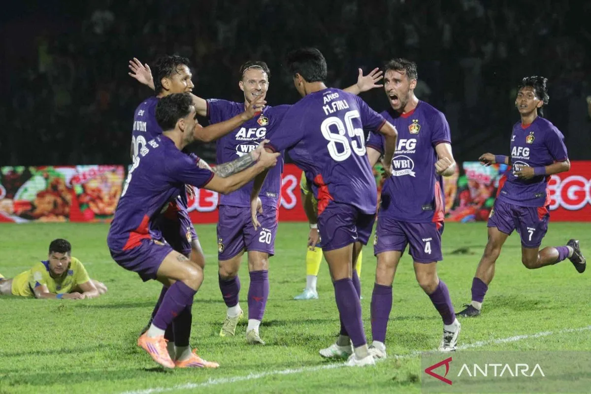 Pesepak bola Persik Kediri Muhammad Firli (ketiga kanan) melakukan selebrasi bersama rekan setimnya usai mencetak gol ke gawang Persib Bandung pada pertandingan BRI Super League di Stadion Brawijaya, Kota Kediri, Jawa Timur, Senin (5/1/2026). Pertandingan tersebut berakhir imbang dengan skor 1-1. ANTARA FOTO/Prasetia Fauzani/nym.