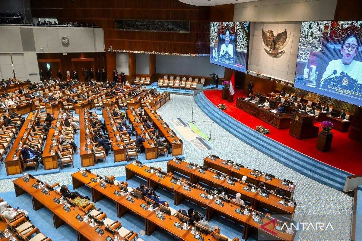 Suasana Rapat Paripurna Ke-11 Masa Persidangan III Tahun Sidang 2025-2026 di Kompleks Parlemen, Senayan, Jakarta, Selasa (13/1/2026). Rapat yang dihadir oleh 294 dari 579 Anggota DPR tersebut merupakan Rapat Paripurna pertama pada tahun 2026 setelah menjalani masa reses sejak awal Desember 2025. ANTARA FOTO/Rivan Awal Lingga/sgd