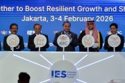 Menteri Koordinator Bidang Perekonomian Airlangga Hartarto (kedua kiri) bersama Ketua Dewan Pengawas Indonesia Business Council (IBC) Arsjad Rasjid (kanan), President of the Islamic Chamber of Commerce and Development (ICCD) Abdullah Saleh Kamel (kedua kanan) dan Premier Sarawak Datuk Patinggi Tan Sri Abang Haji Abdul Rahman Zohari bin Tun Datuk Abang Haji Openg (kiri) berbincang usai membuka Indonesia Economic Summit (IES) 2026 di Jakarta, Selasa (3/2/2026). IES 2026 yang diselenggarakan 3-4 Februari 2026 tersebut merupakan wadah strategis bagi mitra global untuk memperoleh pemahaman terkini mengenai arah kebijakan ekonomi dan prioritas pembangunan Indonesia. ANTARA FOTO/Putra M. Akbar/wsj.