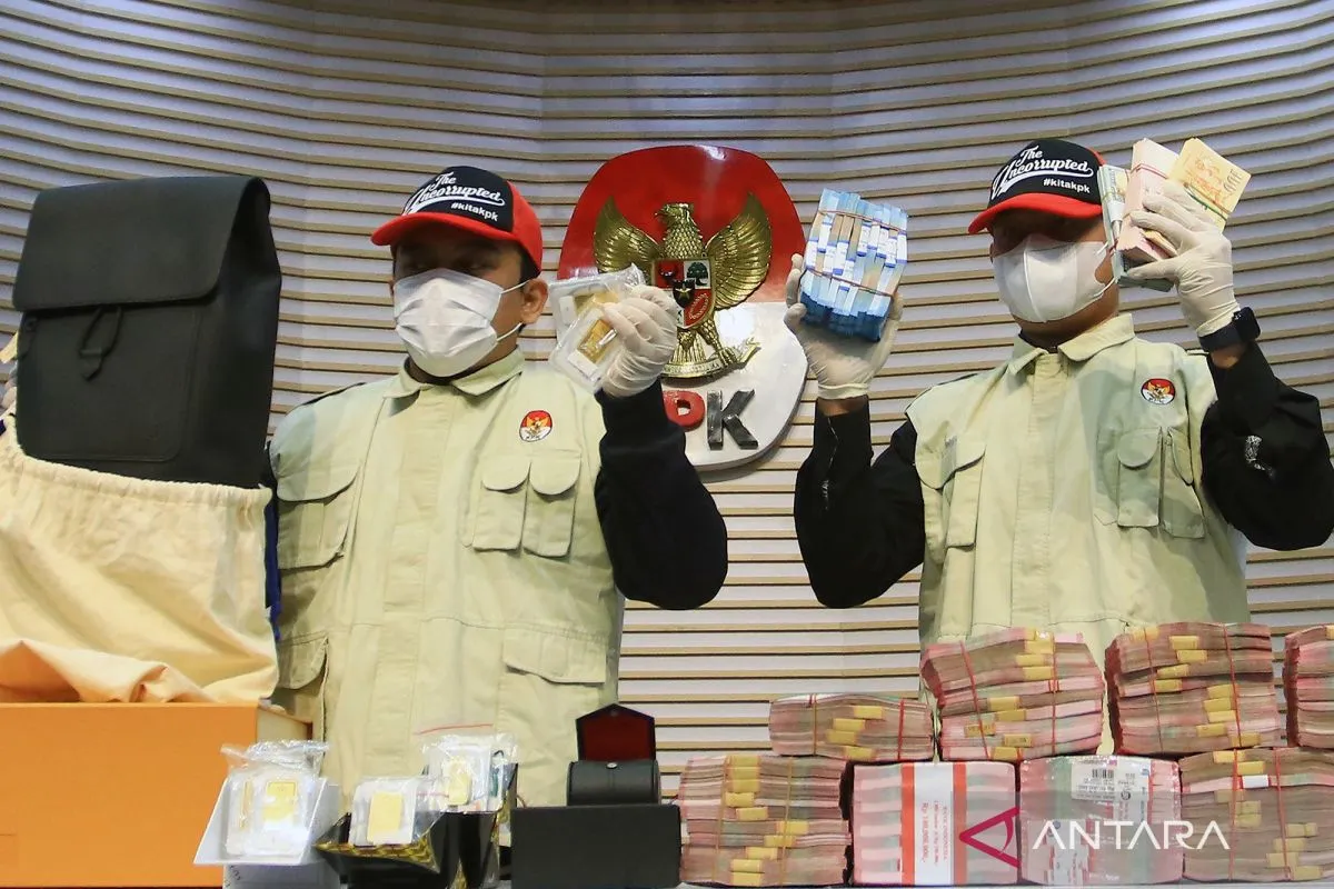 Petugas KPK menunjukkan barang bukti berupa uang tunai dan logam mulia saat konferensi pers terkait dugaan tindak pidana korupsi di Direktorat Jenderal Bea dan Cukai (DJBC) dalam perkara suap importasi.di Gedung Merah Putih KPK, Jakarta, Kamis (5/2/2026). KPK menetapkan 6 orang tersangka usai melakukan operasi tangkap tangan (0TT) di Direktorat Jenderal Bea dan Cukai (DJBC) dalam perkara suap importasi. KPK juga mengamankan barang bukti dalam perkara suap ini total senilai Rp40,5 miliar berupa uang tunai dan logam mulia. ANTARA FOTO/Muhammad Iqbal/wpa.