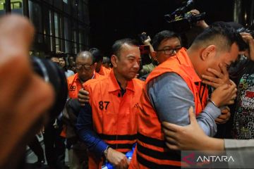Tersangka kasus dugaan tindak pidana korupsi perkara suap importasi di Direktorat Jenderal Bea dan Cukai (DJBC), Orlando Hamongan (kanan), Rizal Fadillah (tengah) dan Sisprian Subiaksono (kiri) berjalan menggunakan rompi tahanan usai menjalani pemeriksaan di Gedung Merah Putih KPK, Jakarta, Jumat (6/2/2026). KPK menetapkan 6 orang sebagai tersangka usai melakukan operasi tangkap tangan di Direktorat Jenderal Bea dan Cukai (DJBC) dalam perkara suap importasi yakni mantan Direktur Penindakan dan Penyidikan Ditjen Bea Cukai Rizal Fadillah, Sisprian Subiaksono selaku Kepala Subdirektorat Intelijen Penindakan dan Penyidikan Ditjen Bea Cukai, Orlando Hamongan selaku Kepala Seksi Intelijen Ditjen Bea Cukai, serta dari pihak swasta Andri selaku Ketua Tim Dokumen Importasi PT Blueray, Dedy Kurniawan selaku Manajer Operasional PT Blueray dan John Field selaku pemilik PT Blueray yang masih menjadi buronan KPK. ANTARA FOTO/Muhammad Iqbal/wpa.
