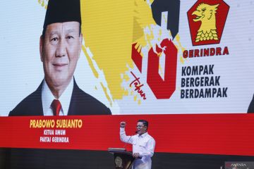 Sekretaris Jenderal Partai Gerindra Sugiono menyampaikan sambutan saat peringatan HUT ke-18 Partai Gerindra di Kompleks Parlemen, Senayan, Jakarta, Jumat (6/2/2026). Fraksi Gerindra di DPR menggelar doa lintas agama dan syukuran dalam rangka memperingati HUT ke-18 Partai Gerindra dengan tema Kompak, Bergerak, dan Berdampak. ANTARA FOTO/Asprilla Dwi Adha/foc.
