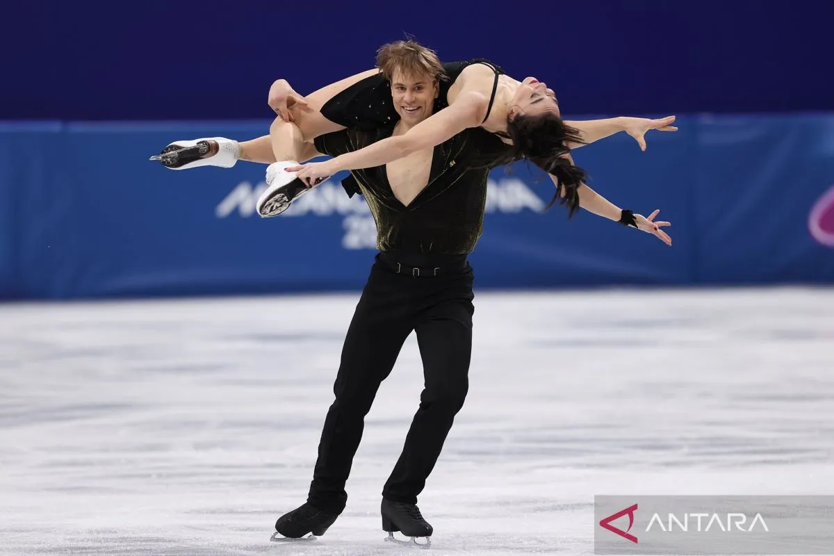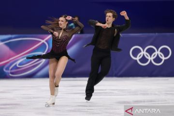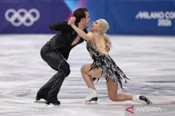 Atlet dansa es Amerika Serikat Christina Carreira kiri dan Anthony Ponomarenko tampil pada kompetisi seluncur indah nomor dansa es di Olimpiade Musim Dingin Milan-Cortina 2026 di Milan, Italia, Senin (9/2/2026). ANTARA FOTO/Xinhua/Chen Yichen/wpa.