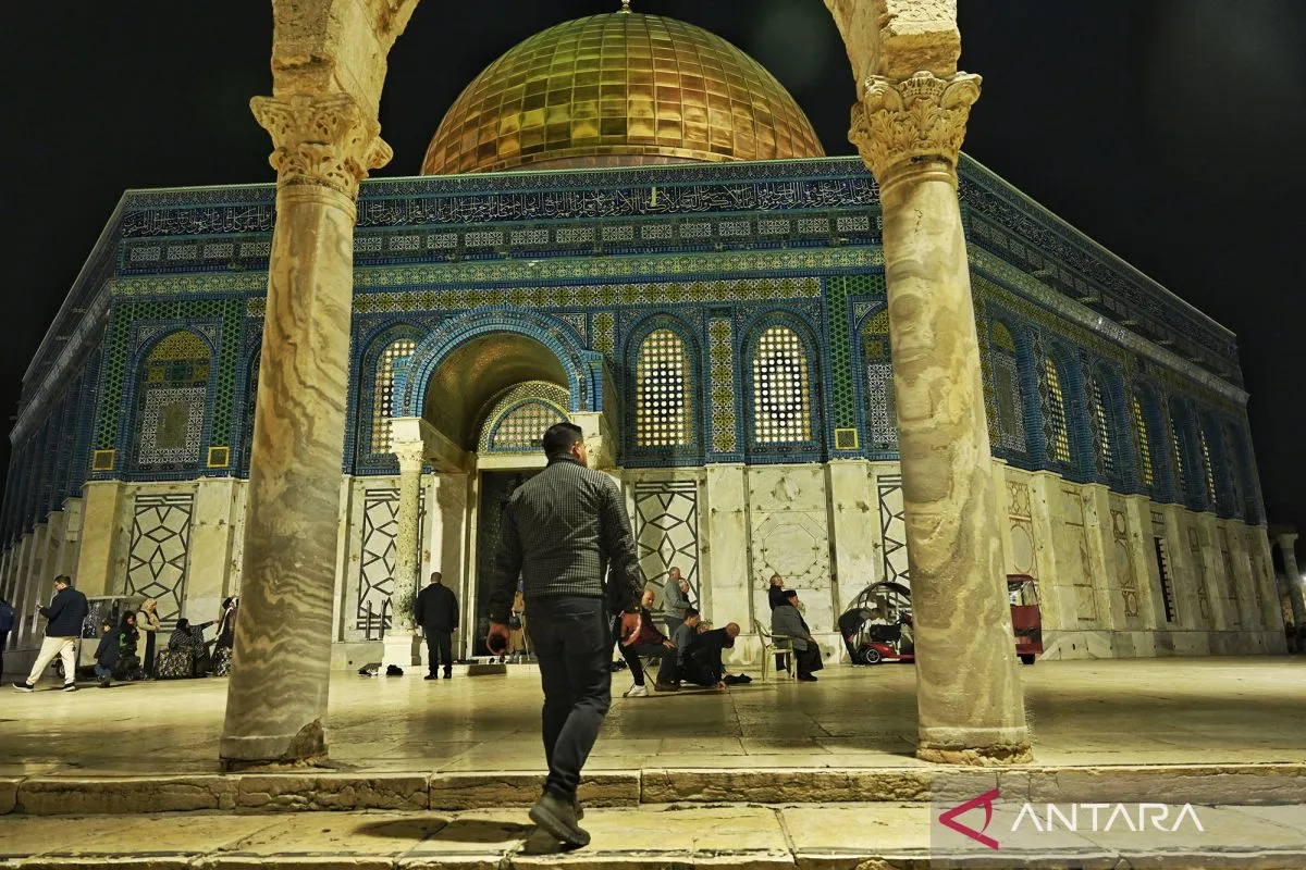 Umat Islam berjalan memasuki kawasan Masjid Dome of the Rock di Komplek Al-Aqsa, kawasan Kota Tua Yerussalem, Kamis (12/2/2026). Komplek Al-Aqsa yang merupakan situs tersuci ketiga dalam Islam tersebut meliputi Masjid Al-Qibli (Kubah Perak), Dome of the Rock (Kubah Emas), Masjid Al-Buraq, dan Mushalla Al-Marwani. ANTARA FOTO/Muhammad Adimaja/bar
