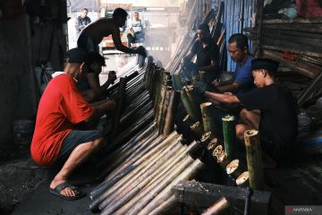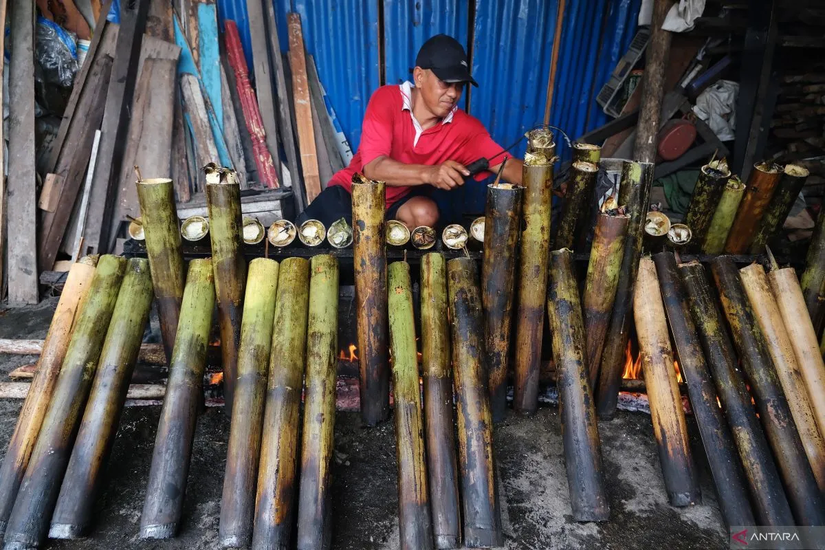 Foto: Melihat pembuatan lemang bambu sebagai menu berbuka puasa