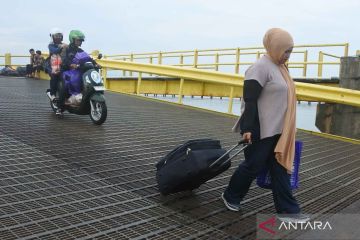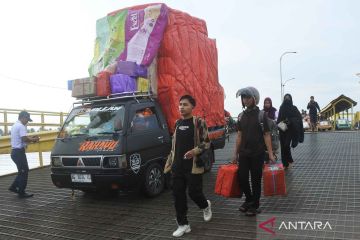 Calon penumpang berjalan memasuki kapal feri di Pelabuhan Jangkar, Situbondo, Jawa Timur, Selasa (3/3/2026). Sejumlah warga Pulau Sapudi, Sumenep, Jatim mulai mudik lebih awal untuk menghindari kepadatan penumpang saat arus mudik Lebaran 2026. ANTARA FOTO/Seno/nym.
