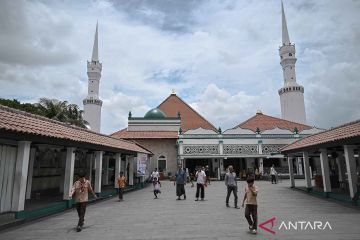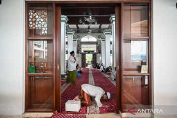 Umat Islam menunggu waktu shalat di Masjid Luar Batang, Penjaringan, Jakarta, Rabu (4/3/2026). Masjid yang menjadi salah satu cagar budaya ini dibangun oleh ulama Habib Husein bin Abubakar Alaydrus pada tahun 1739 dan kini menjadi destinasi wisata religi yang banyak dikunjungi oleh warga Jakarta maupun dari luar Jakarta. ANTARA FOTO/Fauzan/YU
