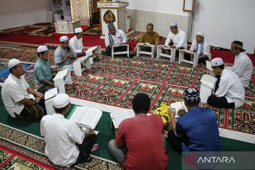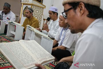 Sejumlah warga binaan pemasyarakatan membaca Al Quran bersama di Rumah Tahanan Negara (Rutan) Kelas II A Palangka Raya, Kalimantan Tengah, Rabu (4/3/2026). Rutan Kelas II A Palangka Raya menggelar kegiatan keagamaan dengan membaca Al Quran atau tadarus selama bulan Ramadhan untuk meningkatkan keimanan dan ketakwaan para warga binaan. ANTARA FOTO/Auliya Rahman/bar
