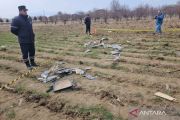 Petugas mengamati puing-puing drone di dekat sebuah sekolah di Republik Otonom Nakhchivan, Azerbaijan, Kamis (5/3/2026). Serangan yang diduga diluncurkan dari Iran pada Kamis (5/3) siang itu, sebuah drone menghantam gedung terminal Bandara Internasional Nakhchivan, melukai dua warga sipil dan menyebabkan kerusakan struktural, sementara drone lain jatuh di dekat sebuah sekolah di desa Shakarabad. ANTARA FOTO/Kantor Berita Negara Azerbaijan Handout via Xinhua/nym.