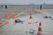Petugas mengamati puing drone di Bandara Internasional Nakhchivan, Azerbaijan, Kamis (5/3/2026). Serangan yang diduga diluncurkan dari Iran pada Kamis (5/3) siang itu, sebuah drone menghantam gedung terminal Bandara Internasional Nakhchivan, melukai dua warga sipil dan menyebabkan kerusakan struktural, sementara drone lain jatuh di dekat sebuah sekolah di desa Shakarabad. ANTARA FOTO/Kantor Berita Negara Azerbaijan Handout via Xinhua/nym.