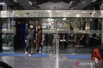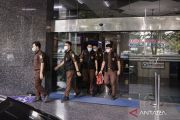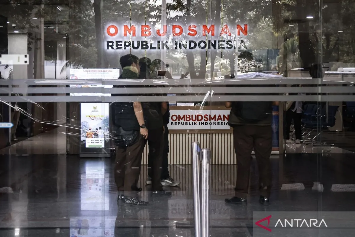 Petugas dari Kejaksaan Agung berjalan keluar ruangan usai menggeledah gedung Ombudsman di Jakarta, Senin (9/3/2026). Penggeledahan tersebut dilakukan terkait kasus dugaan perintangan penyidikan dan penuntutan perkara minyak goreng yang melibatkan tiga korporasi yaitu Wilmar Group, Permata Hijau Group, dan Musim Mas Group. ANTARA FOTO/Dhemas Reviyanto/nz